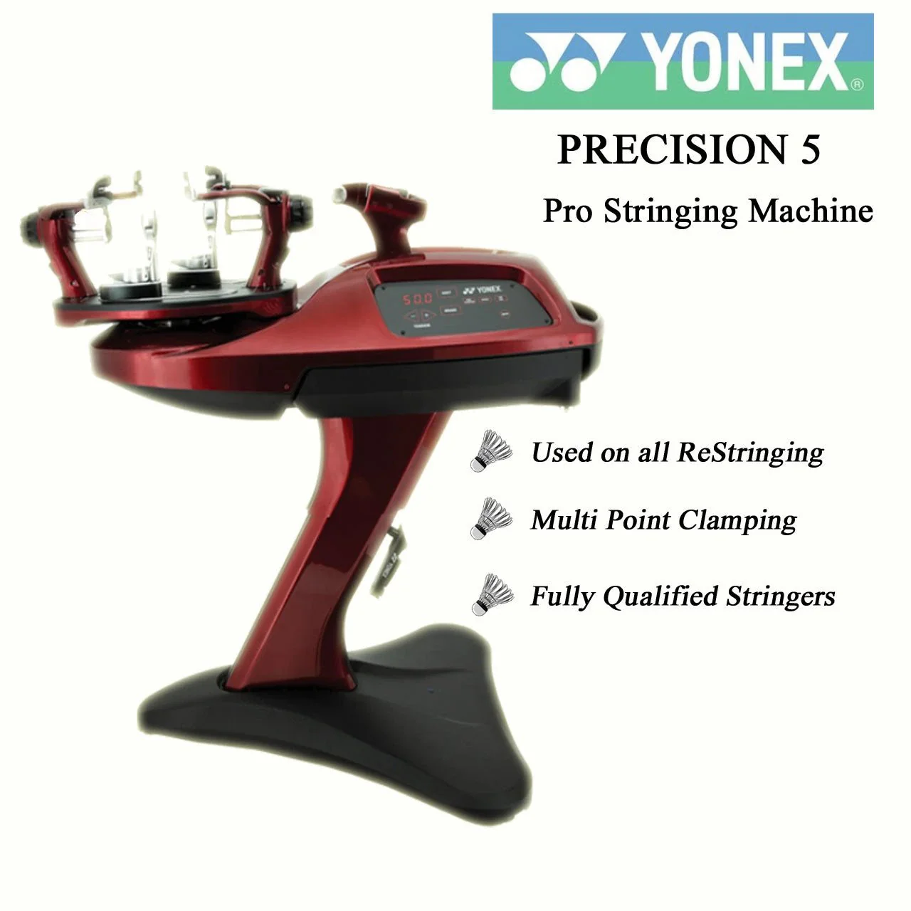 Rackets will be strung with the best serviced Yonex electric stringing machines.
